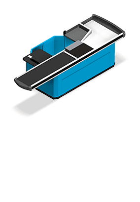 The Geoclass checkout counter project was born in 1993 to complete the SIDAC Euroscacco line of retail shelving systems. The project’s aim was to provide effective checkout barrier solutions with counters of varying dimensions able to cover small to large stores and both the food and non-food sectors.